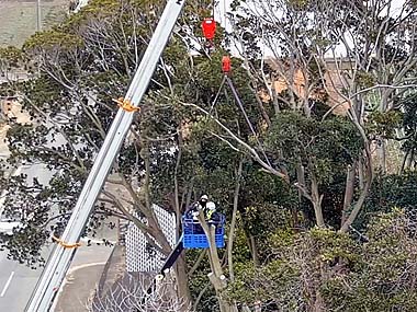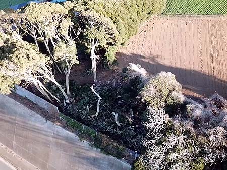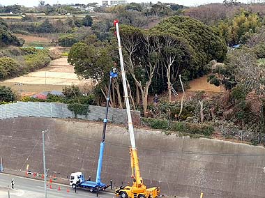 三浦市・小谷戸:よう壁上の危険な雑木伐採プロジェクト